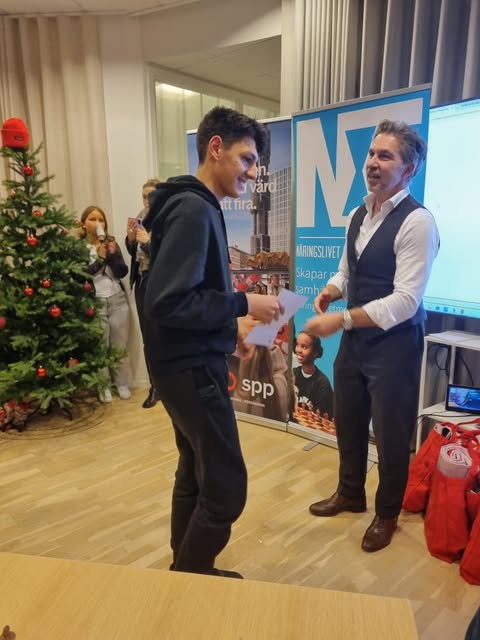 Det blev lag Qulinda med Elya från Ulleviskolan i Skäggetorp, och Fredrik Gustafsson som vann fredagens Näringslivet Möter Förorten i Studenthuset på Linköpings universitet. Eventet lockade storpublik då många ville se ungdomarna, näringslivstopparna och stadens ledande politiker ha kul ihop vid brädet. Arrangemanget invigdes av Linköpings Borgmästare Mikael Sanfridson som ju givetvis själv var med och spelade. Det blev ju en härlig eftermiddag med många skratt, och mycket nätverkande. Radio P4 var på plats liksom övrig media. Näringslivstopparna kom från företag som PWC, Swedbank/Sparbanksstiftelsen Alfa, Tekniska Verken, Qulinda, Scandic, Nano Textile Solutions, Saab m.fl. Företagarnas ordförande i Linköping Anders Björck var på plats och berättade om jobb och inkluderingsmässan Fin dag, Skådespelaren Viktor Åkerblom underhöll deltagarna och kommenterade partierna. Mest uppmärksamhet av de som inte spelade fick det gamla fotbollsproffset Göran Bergort som numera är regionschef på Swedbank i Östergötland som var på plats som sponsor och supporter till Team Swedbank med Vilhelm Nordh Ebbeson och Morteza Alavi som kom på en fin 10:e plats. Det som också är väldigt roligt är att många av ungdomarna har börjat träna och spela schack i Linköpings Allmänna Schacksällskaps ordinarie ungdomsverksamhet utöver NMF träningarna ute i Skäggetorp, det är ju integration på riktigt!